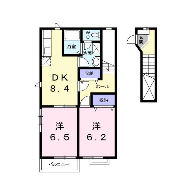 | 間取り | 2DK(洋6.2・洋6.5・DK8.4) | 主要採光面 | - |